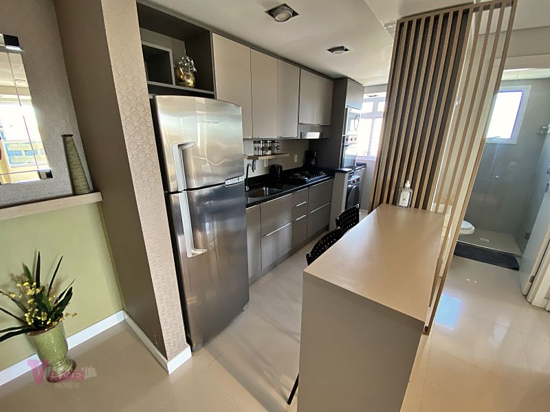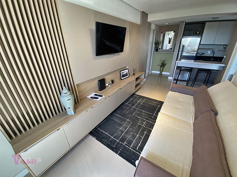 O imóvel conta com 1 dormitório completo com ar-condicionado, garantindo conforto térmico, além de uma sala de estar aconchegante, totalmente integrada à sacada com churrasqueira, que oferece uma bela vista da região. A cozinha é totalmente mobiliada, com móveis planejados e eletrodomésticos, e a área de serviço é integrada, trazendo funcionalidade ao espaço. O apartamento ainda dispõe de banheiro completo e 1 vaga de garagem coberta e privativa.